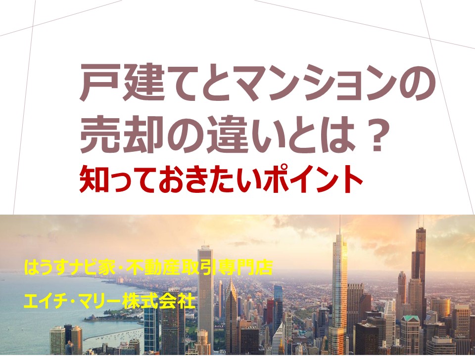 戸建てとマンションでは、査定方法・買主層・売却期間・価格の下がり方・戦略など、多くの点で違いがあります。