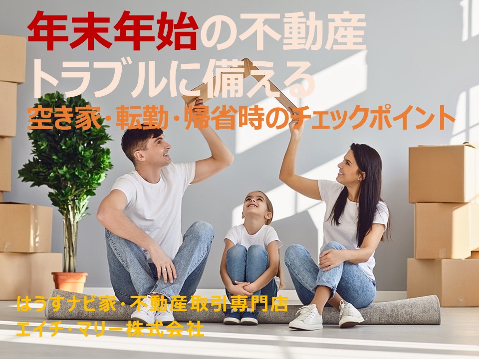 年末年始は、長期休暇で自宅を空ける人が増える時期です。その一方で、「空き家の劣化」「防犯トラブル」「帰省した実家の老朽化発見」など、見落としやすい問題も起こりやすいタイミングです。特に売却予定の物件や、実家を相続する可能性がある場合は、年末年始のチェックが大きな意味を持ちます。