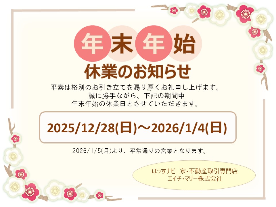 休業期間:2025年12月28日(日)~2026年1月4日(日)